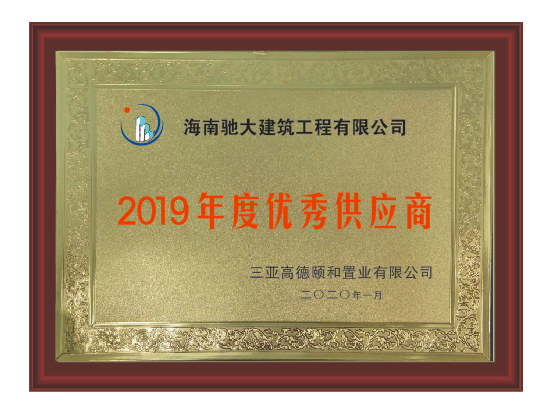 2019年優(yōu)秀供應(yīng)商-三亞高德頤和置業(yè)有限公司